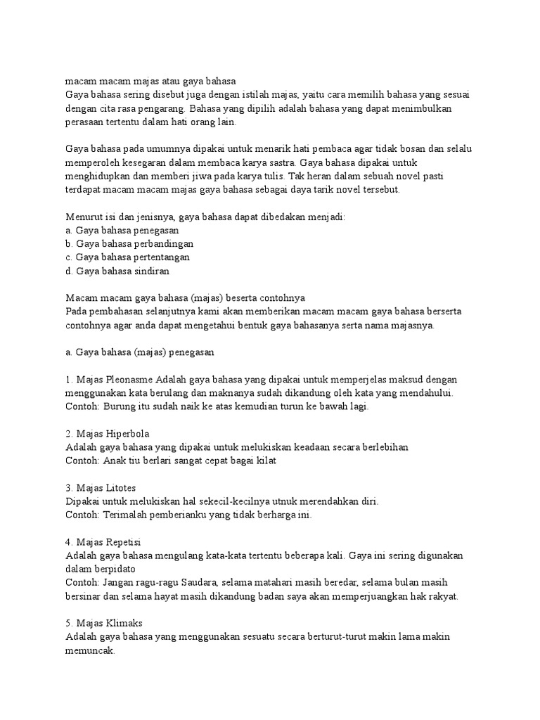 Macam Macam Majas Atau Gaya Bahasa Docx